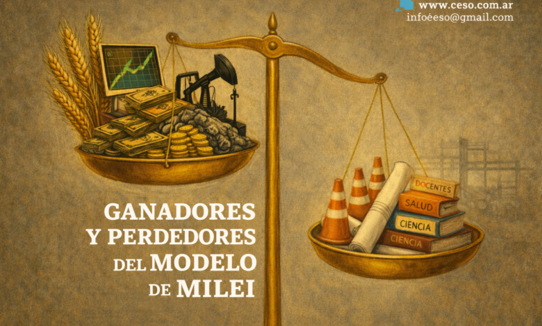 A dos años del inicio del gobierno de Javier Milei, la economía argentina revela ganadores claramente identificados —grandes empresas y sectores exportadores— y perdedores persistentes —trabajadores públicos, jubilados, provincias y sectores productivos orientados al mercado interno—. Aunque la desaceleración inflacionaria es un logro destacado, no ha revertido el deterioro social ni productivo, según revela el informe «A dos años de Milei» elaborado por el Centro de Estudios Económicos y Sociales Scalabrini Ortiz (CESO).