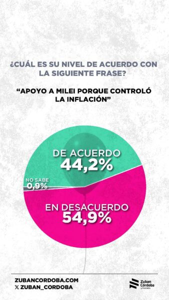 El desgaste es claro también en otros frentes: el 61,9% cree que Milei está “destruyendo el Estado” , y apenas el 44,2% considera que ha logrado controlar la inflación.