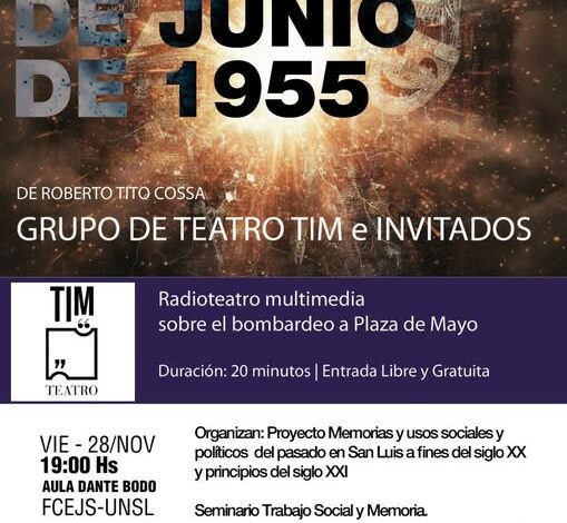 El Teatro Independiente Mercedes (TIM) anunció una nueva actividad cultural para este viernes 28, a las 19 horas, en el aula Dante Bodo de la Universidad Nacional de San Luis. La propuesta, abierta a todo público, busca acercar el trabajo artístico del grupo a la comunidad universitaria y al público en general.