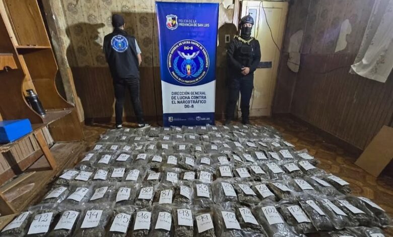 Un fuerte golpe al narcotráfico tuvo lugar en Villa Mercedes, donde la Policía provincial secuestró estupefacientes valuados en más de $640 millones durante dos allanamientos realizados por la Dirección General de Lucha Contra el Narcotráfico.