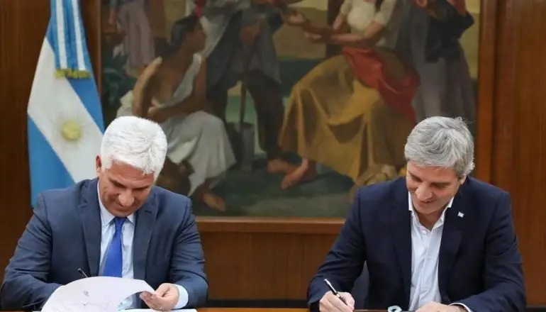 El gobernador Claudio Poggi compartió escenario con el ministro de Economía Luis “Toto” Caputo para anunciar la reactivación del Acueducto La Florida II, una obra que ambos gobiernos habían frenado en 2023 pese a contar con un 85% de avance.