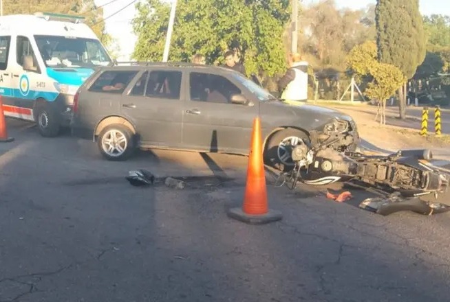 Un policía resultó herido tras chocar en moto con un auto en la Avenida V Centenario