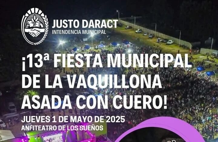 La ciudad de Justo Daract vivirá una jornada de tradición, sabor y alegría este 1° de mayo, con una nueva edición de la Fiesta Municipal de la Vaquillona Asada con Cuero, que llega a su 13ª edición reafirmando el espíritu comunitario y el orgullo local. La cita será en el Anfiteatro de los Sueños, con entrada libre y gratuita.